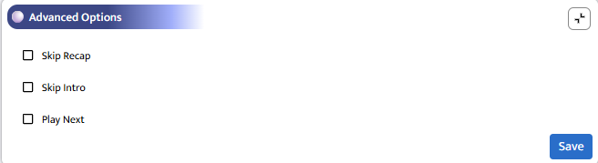 In the Advanced Options section, there are three settings you can configure for your content:- Skip Recap — Allow users to skip the recap section at the start of the content.