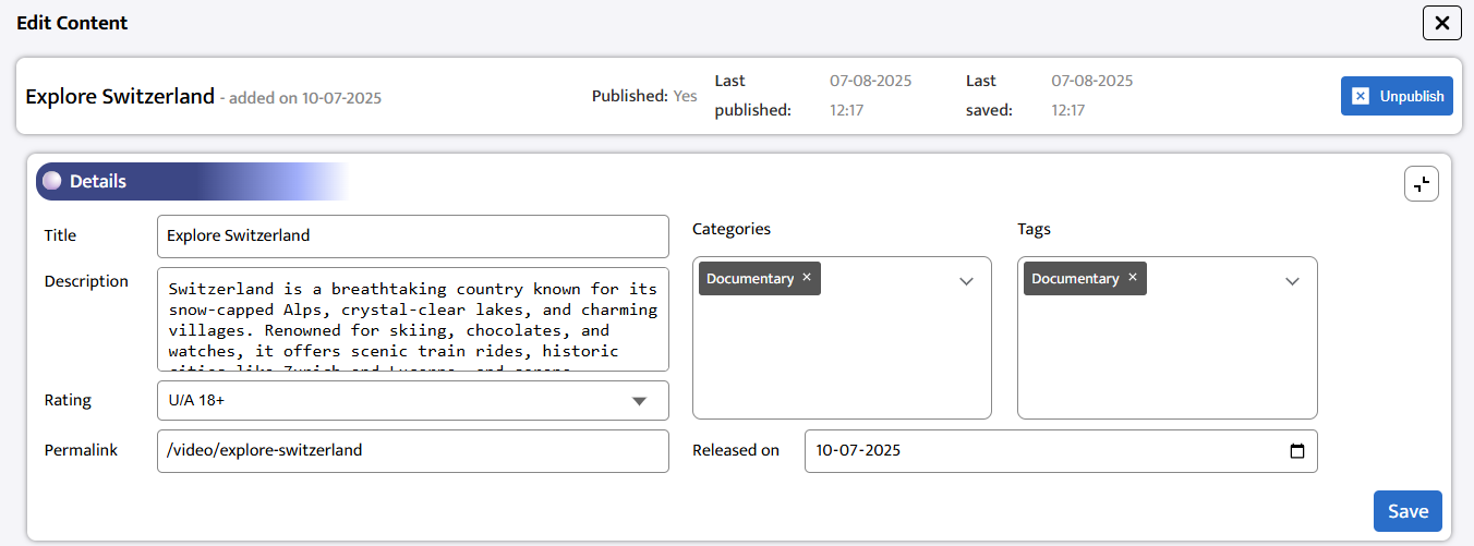 After editing content, you must publish it to make the changes accessible to users.Unpublished content will remain in draft mode and will not be visible to viewers.