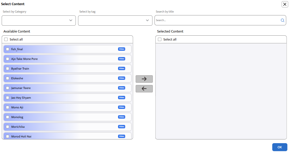 The Trailer/Promo section allows you to upload promotional videos for your content:Prerequisites: Ensure that the trailer or promo video is uploaded before proceeding. The promo/trailer must not be encrypted and should be monetized using an AVOD plan.